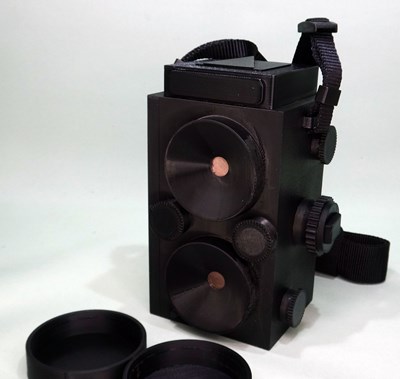 ブローニーフィルム(61×117mmにカット)で2枚撮影可能